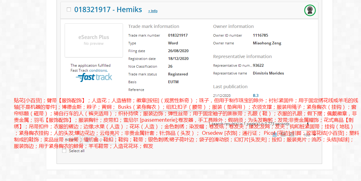 歐盟商標(biāo)-hemiks-26類-鈕扣拉鏈假發(fā)
